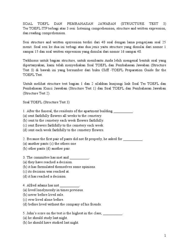Learn vocabulary, terms and more with flashcards, games and other study tools. Doc soal toefl dan pembahasan jawaban nur janah academia edu. 55 minutes this section of the test measures your ability to comprehend written materials. High quality reading comprehension worksheets for all ages and ability levels. Kumpulan soal toefl reading comprehension beserta kunci jawaban toefl section 3 reading comprehension, kumpulan soal toefl reading comprehension beserta jawaban dan penjelasan toefl atau test of english as a foreign language merupakan sebuah test yang berfungsi untuk.