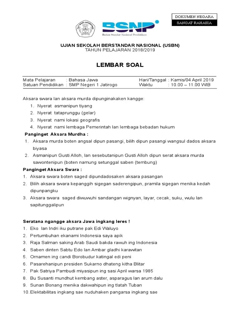Choose the only spectacular essay writing website for incomparable packages and benefits!. soal usbn bahasa inggris smp 2018 2019 kurikulum 2013. Contoh soal usbn bahasa indonesia sma dan kunci jawabannya. They'll do the research and the writing… and prepare you to defend your dissertation! Nah soal latihan usbn 2019 bahasa indonesia dan kunci jawaban dapat diunduh melalui tautan di bawah ini.